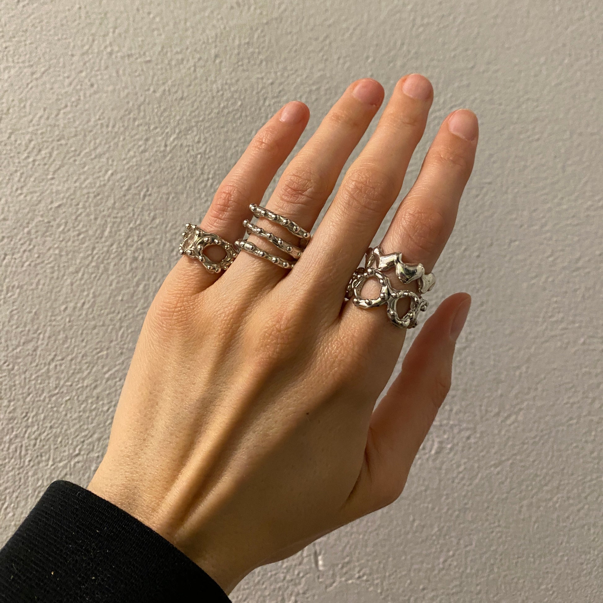 Ring mit 3 Bändern und Bubbles aus 935 Silber.