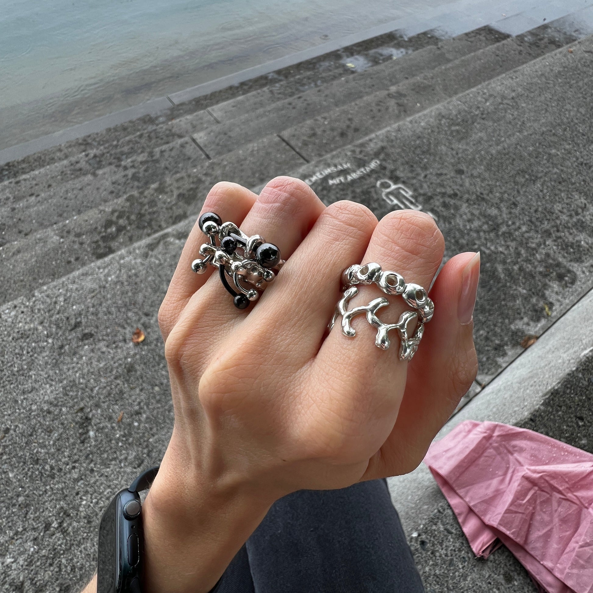 Fluider Ring aus 935 Silber mit 4 Piercings.