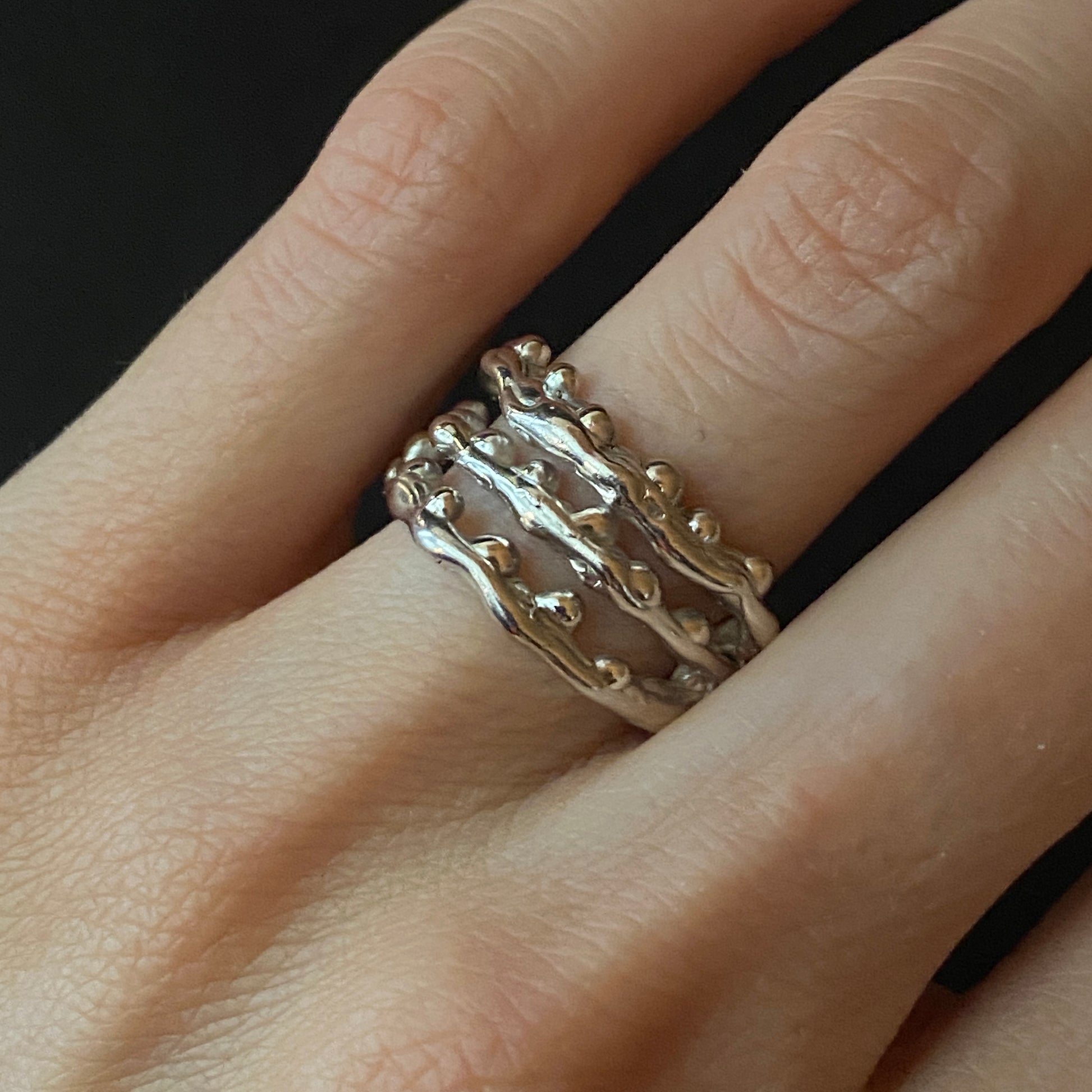 Ring mit 3 Bändern und Bubbles oben aus 935 Silber.