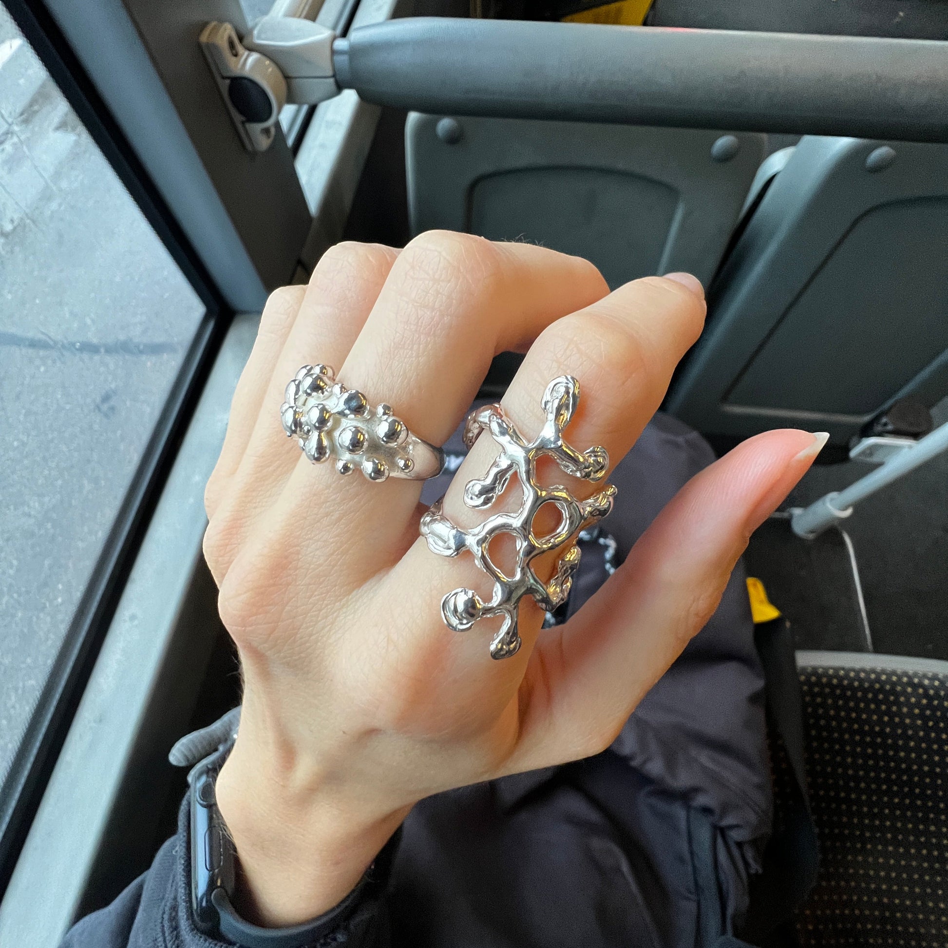 Großer Ring mit fluiden Muster aus 935 Silber.